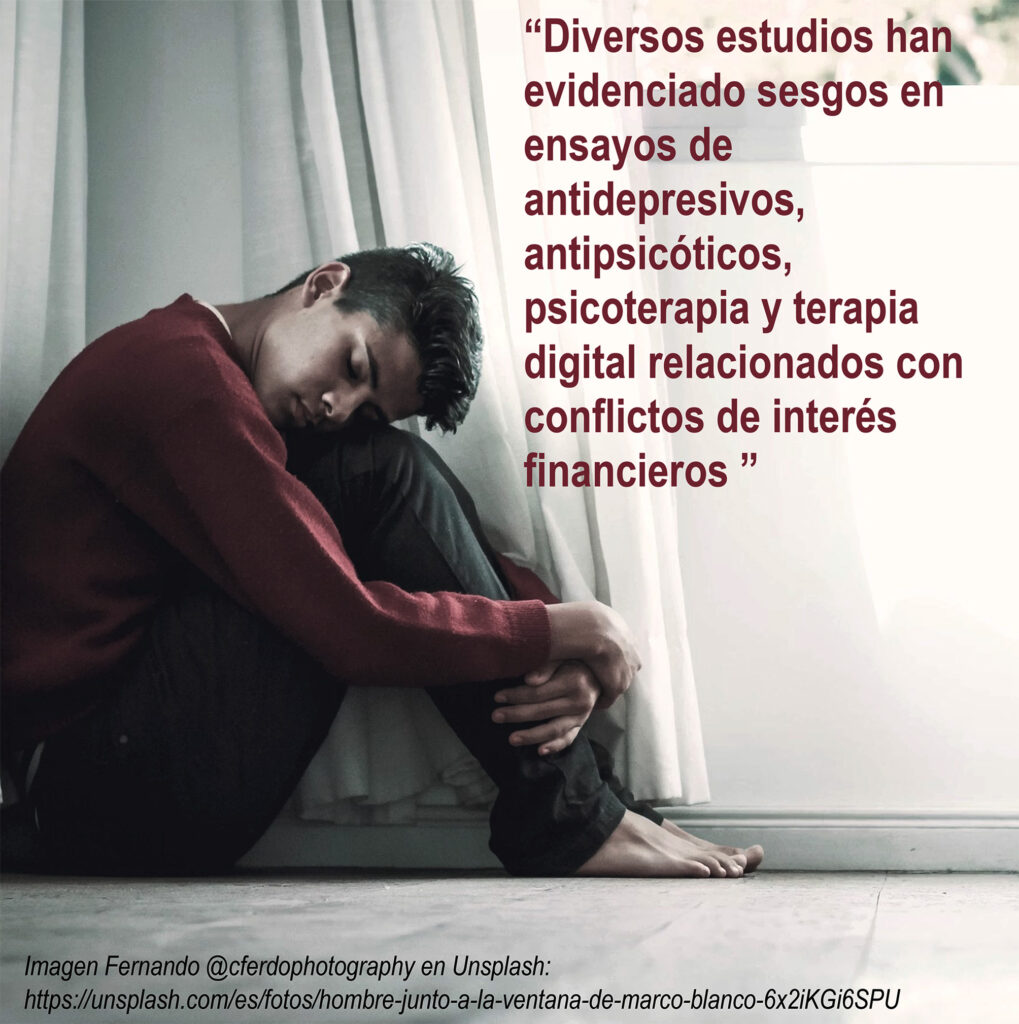 Diversas investigaciones han demostrado que el financiamiento de la industria influye en los resultados de los ensayos clínicos. Diversos estudios han evidenciado sesgos en ensayos de antidepresivos, antipsicóticos, psicoterapia y terapia digital relacionados con conflictos de interés financieros. Expertos también han argumentado que este tipo de pagos de la industria, tanto a los autores de ensayos clínicos como a los expertos que escriben comentarios sobre ellos, socavan la credibilidad de las principales revistas científicas.
