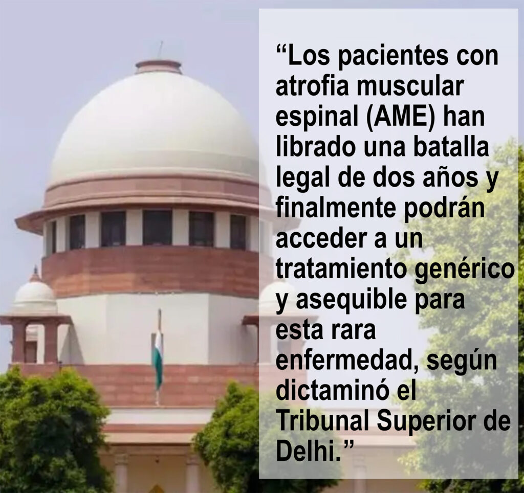 Los pacientes con atrofia muscular espinal (AME) han librado una batalla legal de dos años y finalmente podrán acceder a un tratamiento genérico y asequible para esta rara enfermedad, según dictaminó el Tribunal Superior de Delhi. «Estamos profundamente agradecidos al poder judicial por emitir un veredicto que prioriza la vida, la compasión y la justicia. Esta decisión ayudará a salvar las vidas de innumerables pacientes con AME como yo y brindará esperanza donde más se necesita», declaró Purva Mittal, de 24 años.